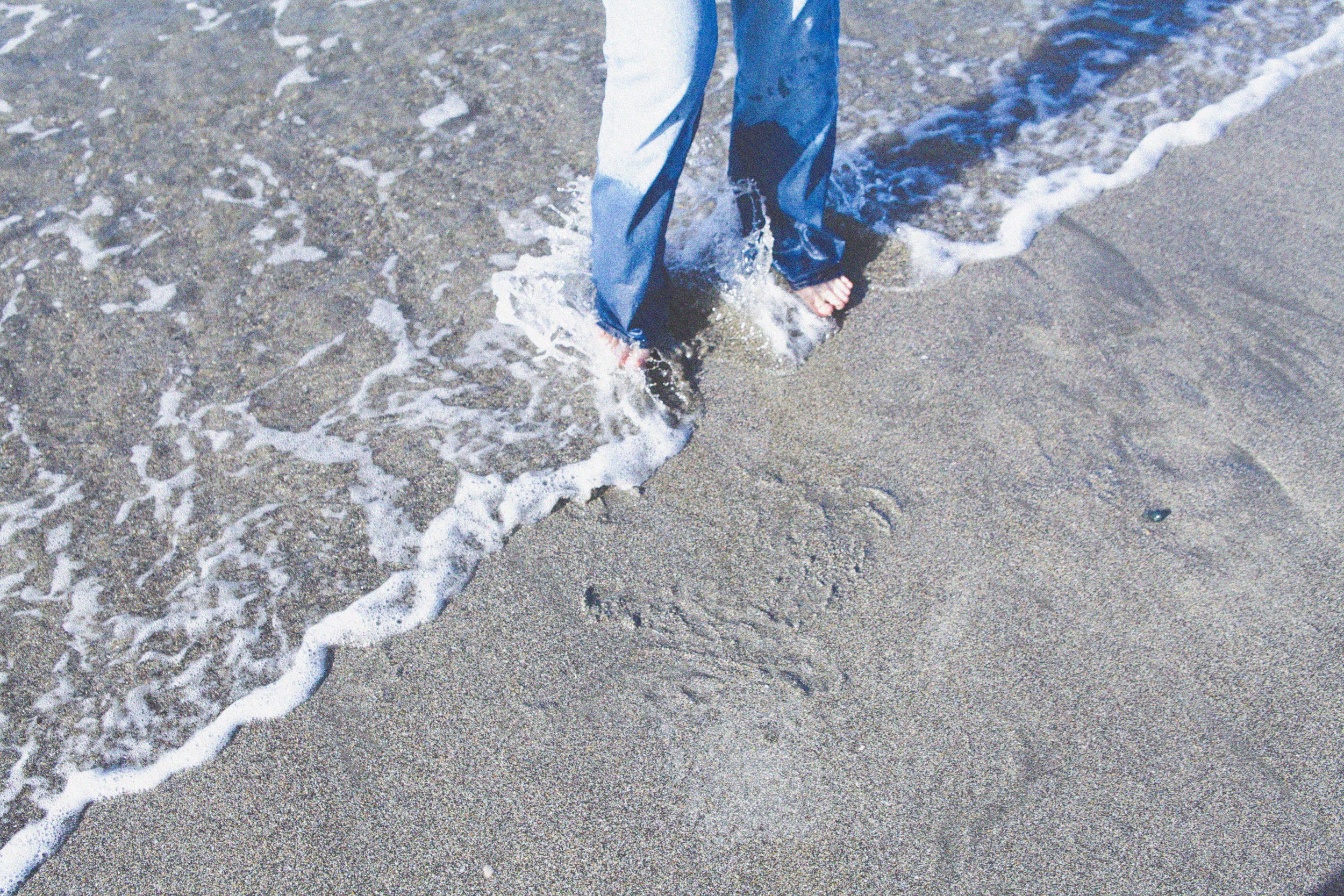 デニムのまま海に入ろうとして、